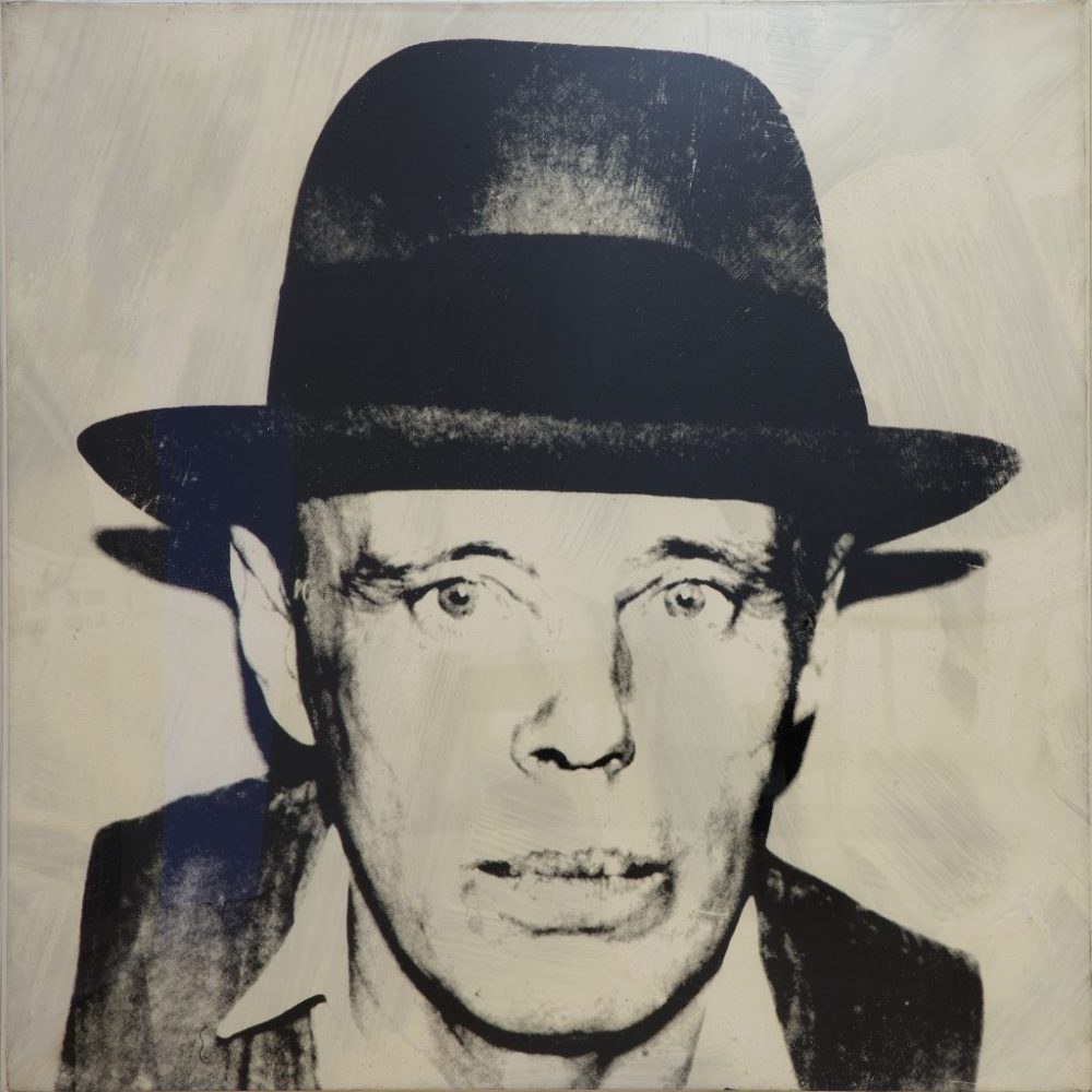 Beuys by Warhol, l’opera entrata a far parte della collezione del museo nell’ambito del progetto Per_formare una collezione, è stata realizzata dall’artista americano nel 1980, e fa parte di una serie di ritratti del grande artista tedesco che Warhol concepì in occasione dell’incontro tra i due artisti, avvenuto a Napoli per iniziativa del gallerista Lucio Amelio. Figura di fondamentale importanza per l’arte contemporanea internazionale, nel 1965 Lucio Amelio apre a Napoli la sua Modern Art Agency, esponendo i lavori degli artisti più innovativi di quegli anni, tra i quali appunto Beuys e Warhol, divenendo luogo di dibattito e di ricerca, quale punto d’incontro fra artisti di fama internazionale anche molto diversi fra loro. La natura politica, filosofica, simbolica e radicale del lavoro di Beuys costituiva, in quegli anni, un’esperienza tra le più importanti dell’arte concettuale di matrice sociale, ma era profondamente distante dall’indagine di Warhol sulla società dei consumi di massa e sul culto mediatico della celebrità. La diversità di queste due visioni rese ancora più eclatante, agli occhi del mondo dell’arte di quegli anni, l’incontro reso possibile dalla personalità carismatica di Amelio, di cui il ciclo Beuys by Warhol costituisce forse l’esito più estremo. La serie di ritratti che Warhol dedica a Beuys è incentrata su una fotografia che, se ben coglie l’intensità psicologica e l’acume del pensiero dell’artista tedesco (con il risultato di produrre un ritratto molto distante dalle usuali immagini di celebrità cui è legato il nome di Warhol), è per altro sottoposta all’appiattimento serigrafico e alla variazione cromatica in più versioni abituali per l’artista. Un’opera al contempo personale e seriale, il confronto, allora come ora attualissimo, fra arte americana e arte europea.