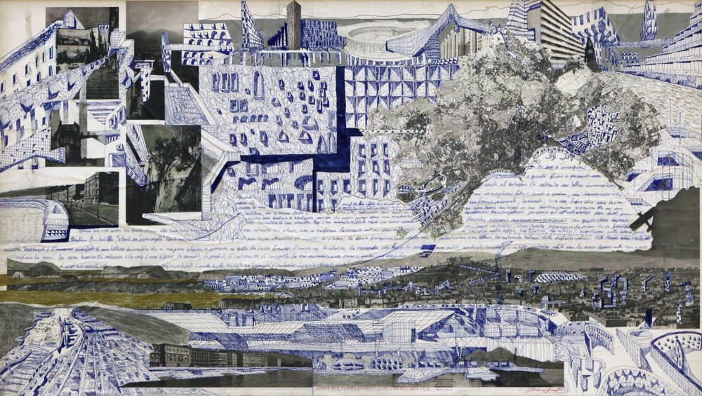 Supernapoli diviene così un volume che ne racconta le fasi processuali e le figure progettuali e, soprattutto, una doppia quadreria, esposta, durante il suo compiersi dal vivo, alla Biennale di Architettura di Venezia nel 2014, e poi alla Triennale di Milano nel 2015. Nell’ambito del progetto Per_formare una collezione. Per un archivio dell’arte in Campania, l’opera torna nella sua città d’origine e trova collocazione permanente, di invito fantastico e stimolo intellettuale, nella collezione del museo Madre. Confermando così la natura performativa, agita e mutevole, condivisa e comunitaria, relazionale e dialogica della collezione del museo napoletano d’arte contemporanea, volta a sondare, esplorare, documentare e mettere in azione energie anche non ortodosse e sconfinamenti linguistici, disciplinari e metodologici, che in questo caso rimettono in circolo, e in prospettiva, il rapporto fra l’architettura e l’arte, fra la città reale e la città utopica.