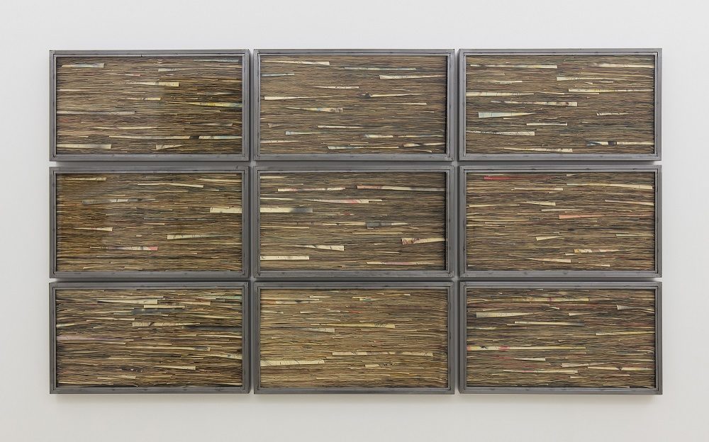 L’opera Senza titolo, 2013, donata al Madre e presentata nell’ambito del progetto Per_formare una collezione. Per un archivio dell’arte in Campania, è un esempio di questa prassi: carte strappate, tagliate, recanti tratti di matita, tracce di esperienza custodite in teche di ferro che ne accolgono la storia individuale celebrando al contempo l’enigma e il fascino della Storia. Un’opera che, racchiudendo le sue stesse stratificazioni, rende anche un chiaro riferimento a una città come Napoli, richiamo autobiografico alle proprie origini, invito allo sguardo a procedere oltre la superficie, nella ricerca di molteplici significati, di un ordine possibile nella frantumazione dello spazio e del tempo.