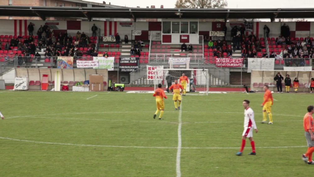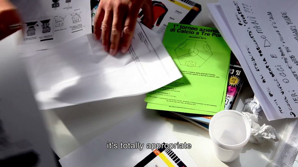 The Danish artist Asger Jorn drew on this theory in the 1950s, representing its dynamics with a variation on the game of soccer which included the participation of three teams and a hexagonal playing field with three goals. The rules of three-sided soccer are inevitably different from traditional soccer. For example, goals are only allowed if they are scored through collaboration between players of two teams, making it essential to cooperate in order to win. Hence the winning team is the one that concedes the fewest goals. Correale decided to put the game into practice, and the video that recounts this experience – with an idiom poised between a TV news report and documentary – highlights how the stages in the team’s creation – from the choice of name and badge to training – become real opportunities for comparison and exchange between the sides. The artist thus constructs a pervading metaphor for contemporary political and social disputes, for strategies aimed at overcoming the present crisis situation, and for the arbitrariness of concepts of opposition and success.
